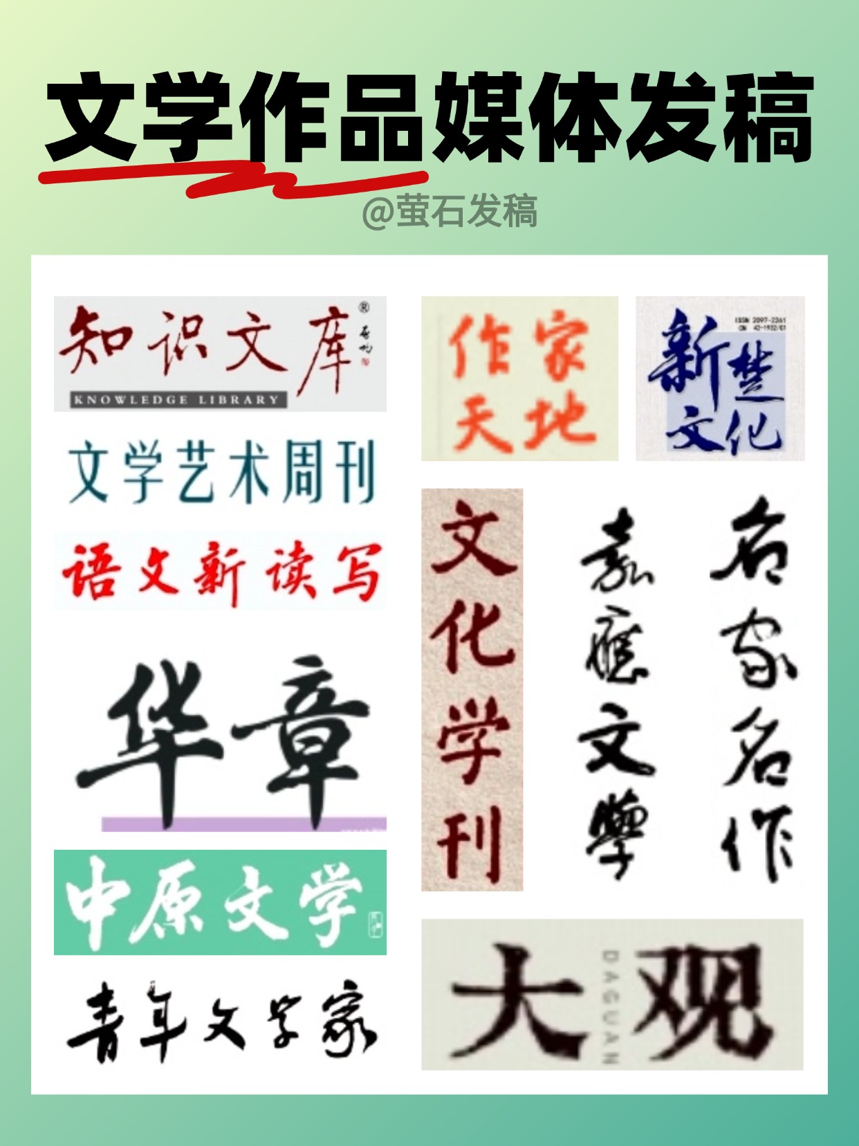 今天,【萤石发稿】就为大家系统梳理文学作品可投稿的媒体类型,再总结一套通用的投稿技巧,无论你是写小说、散文还是诗歌,这篇文章都能派上用场。